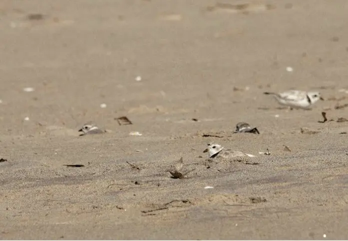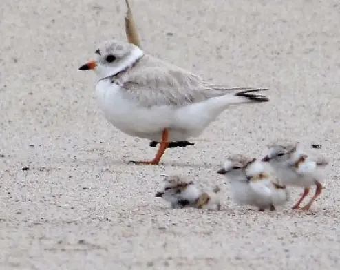 Piping Plovers generally have only one brood per year, although they may renest after a failed first attempt. Pairs able to nest in April and May can fledge broods by the start of the hurricane season in June. In 2019 there were only 57 pairs breeding in Connecticut. Since then, there has been a slow but steady increase, and in 2024, 83 pairs nested in the state. Conservation programs are paying off. In 2025, Milford Point hosted 21 pairs, a new high, up from 16 pairs in 2024, showing conservation efforts and preserving habitat have positive effects, both for the plovers, and for other sandy-beach dependent species, such as Least Terns and American Oystercatchers.