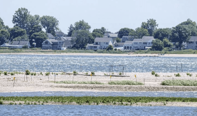 This year, as with last, a crew from Connecticut Audubon has erected string fencing on the beach. This helps keep unsuspecting beach goers from entering the Piping Plover and Least Tern nesting areas and inadvertently stepping on their eggs. Volunteers also placed a wire mesh called an exclosure around the plovers’ nest with a netting top to keep avian and terrestrial predators out. The mesh spacing is wide enough for her and her mate to pass through, but not larger creatures.