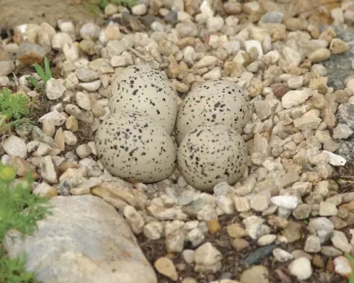 April 5th. Courtship is in full swing. He now walks through his territory making several nest scrapes in the sand using his breast and feet while his mate accompanies him. He continues scraping depressions in the sand for nine more days, adding pebbles and shells to each site with help from his partner, until she chooses her favorite spot (often the site where they have copulated the most). Her choice made, he once again begins goosestepping before her, further cementing their bond. They copulate and will do so many times before her final egg is laid. She will lay 4 eggs over six days, incubating them occasionally. Incubation begins in earnest once the last egg is laid.