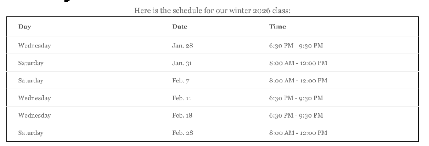 CERT’s next training program starts on February 26. Each person completing the training receives a specially designed and filled backpack to assist them in emergencies.