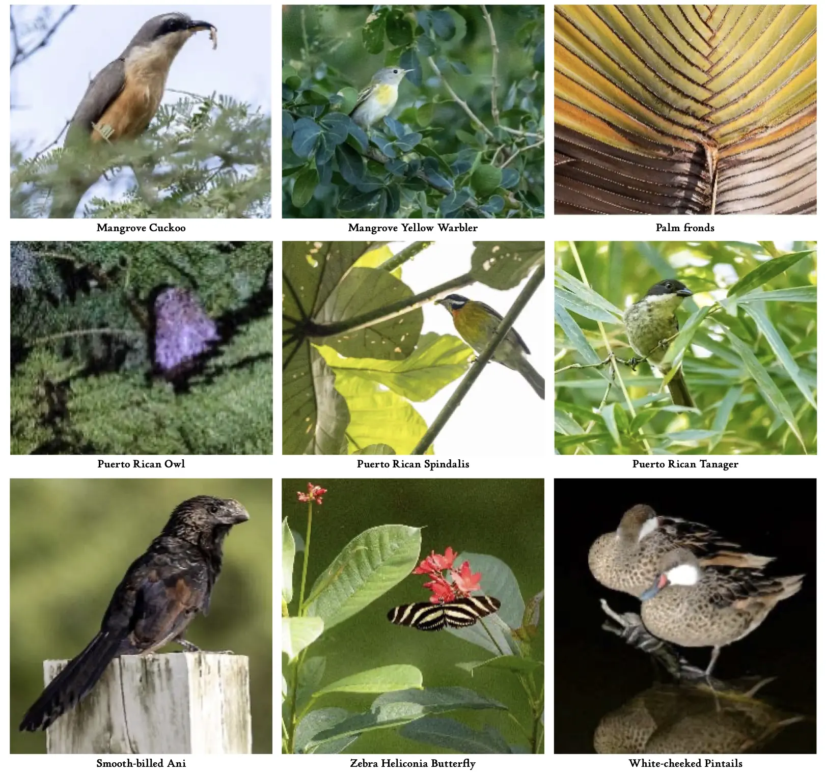 Over the next several days, I walked La Parguera’s neighborhoods seeking the glittering gold PR Mango hummingbird. I explored nearby lagoons filled with White-cheeked Pintails and wintering shorebirds, and local rice farms for rare Grasshopper Sparrows, and Smooth-billed Anis. I also took several trips into the mountains in search of other endemics, including the elusive Elfin-woods Warbler.