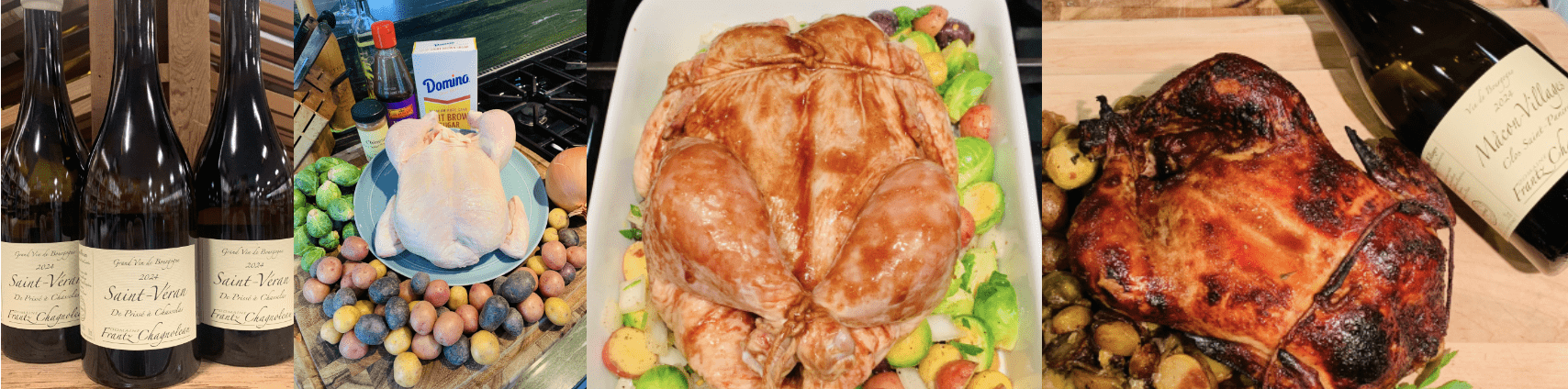 For a wine pairing, I went with a terrific white Burgundy as there is something about the fat from poultry that meshes so well with the flavor of a carefully crafted Burgundy. Domaine Frantz Chagnoleau is a small, highly-regarded estate in the southern Burgundy region of the Mâconnais, run by the husband-and-wife team of Frantz Chagnoleau and Caroline Gon. Both trained in oenology , Frantz honed his craft working with Olivier Merlin in the Mâconnais, while Caroline, with dual degrees in agricultural engineering and winemaking, spent time at Newton Vineyard in Napa before both returned to France ang going out on their own. Since 2013 their vineyards have been certified organic, and they emphasize hand harvesting, indigenous yeast fermentations, and aging in older oak to let the true character of the land shine through.