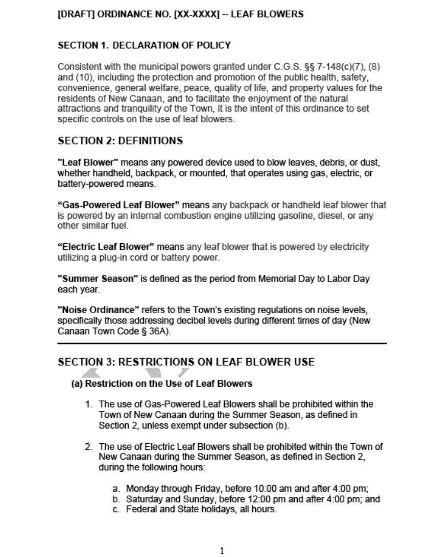 The Town Council will now decide whether New Canaan joins the list of towns placing seasonal limits on gas-powered leaf blowers — or charts its own path.