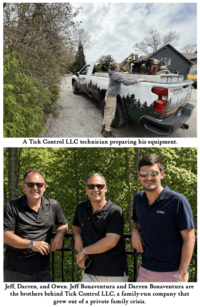 To understand what that looks like on the ground, we spoke with Jeff Bonaventura and Darren Bonaventura, the brothers behind Tick Control, LLC, a family-run company that grew out of a private family crisis. Their father became seriously ill after a tick bite, they said in a long interview, suffering complications and requiring intensive treatment. The experience changed the way they thought about the problem. It was no longer an environmental nuisance or a seasonal business opportunity. It was a threat that had already entered their own family, and they decided to build a company around trying to do something about it.