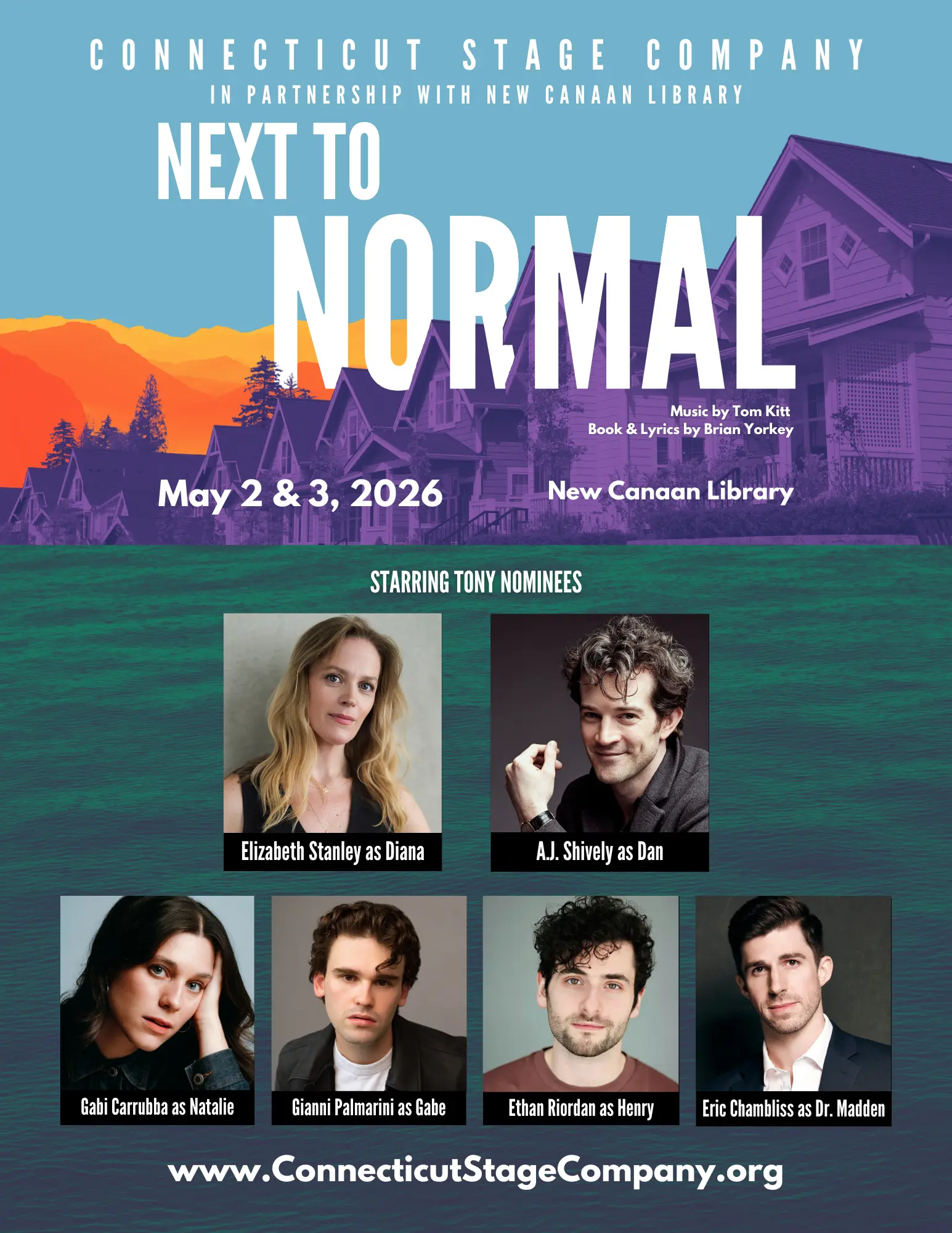 Connecticut Stage Company continues its third season with the Pulitzer Prize and Tony Award winning musical Next to Normal. With an electrifying pop/rock score by Tom Kitt and an honest, gut-wrenching book and lyrics by Brian Yorkey,